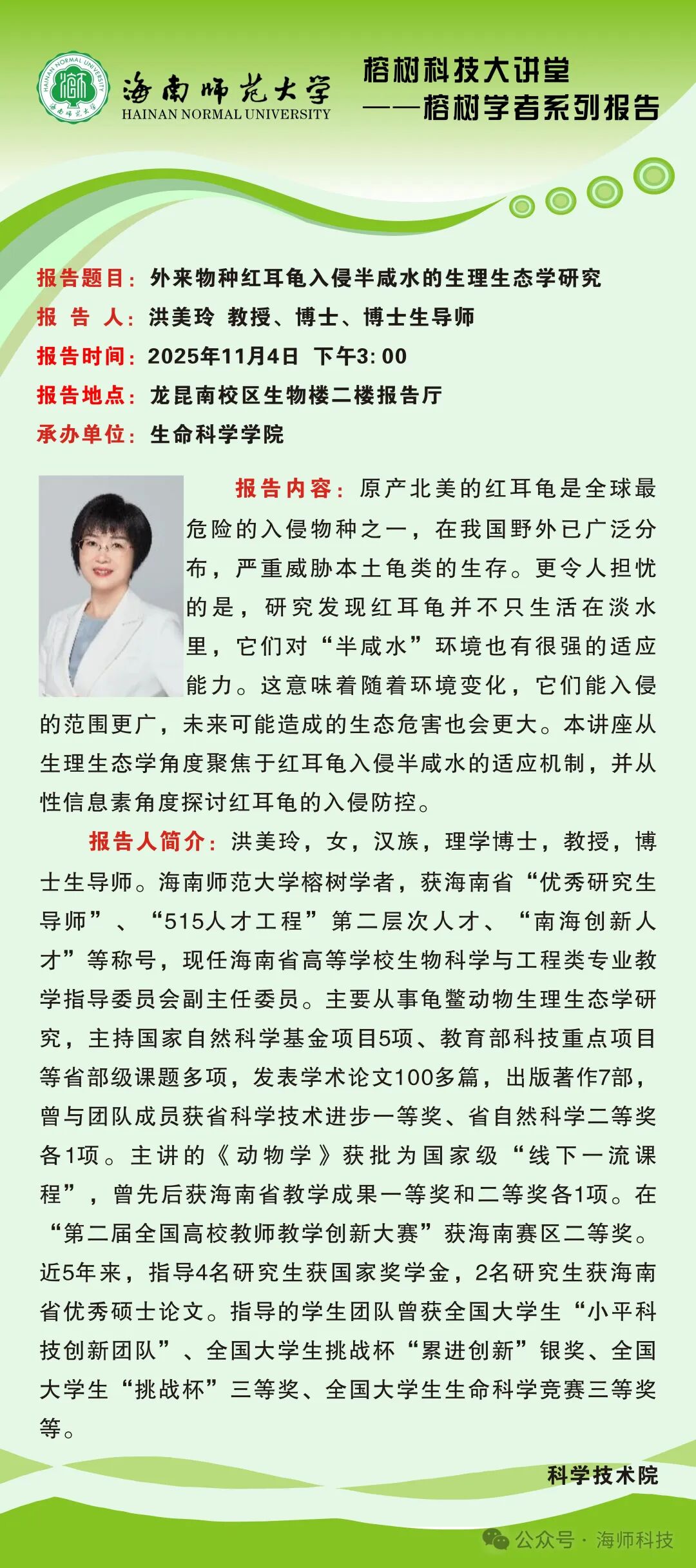 格树科技大讲堂--榕树学者系列报告.外来物种红耳龟入侵半咸水的生理生态学研究