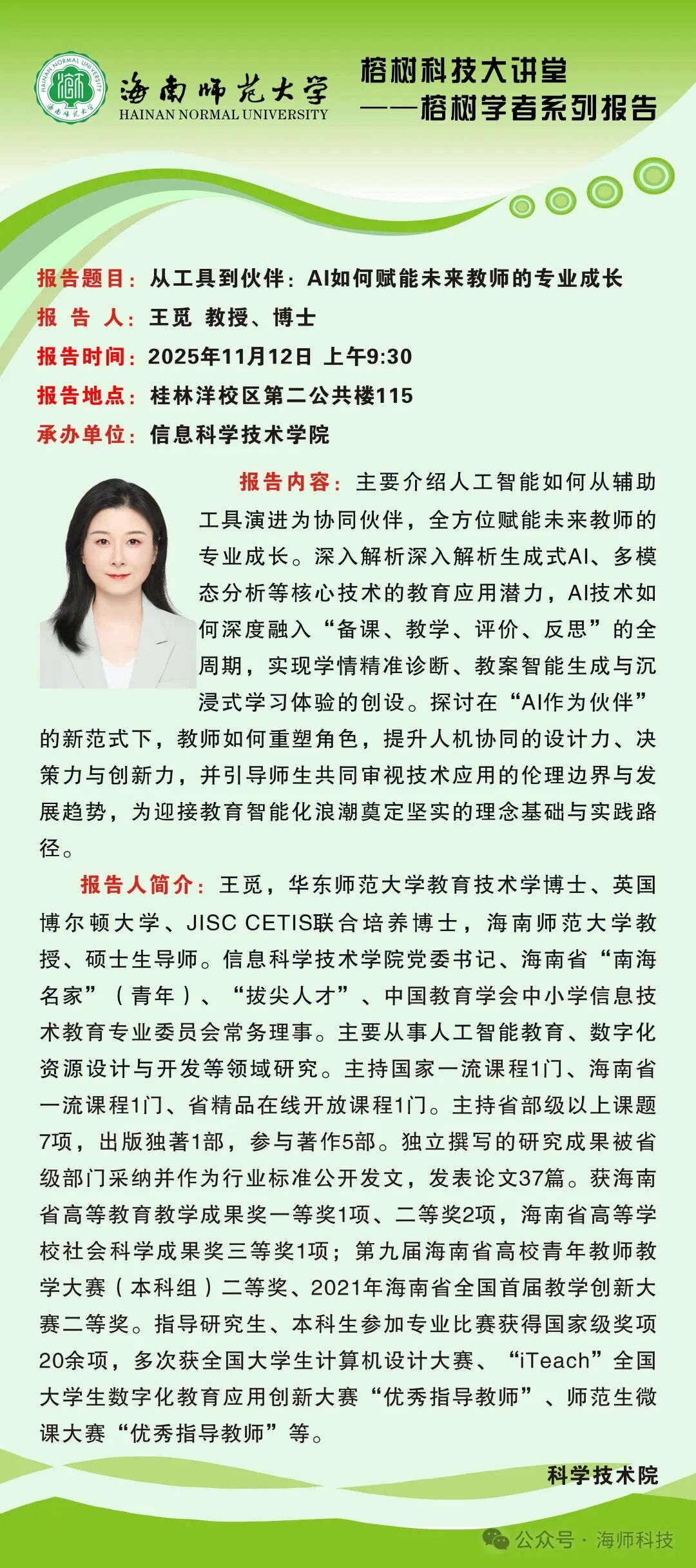 榕树科技大讲堂--榕树学者系列报告.从工具到伙伴:AI如何赋能未来教师的专业成长