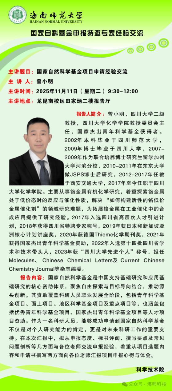 榕树科技大讲堂-国家自科基金申报特邀专家经验交流